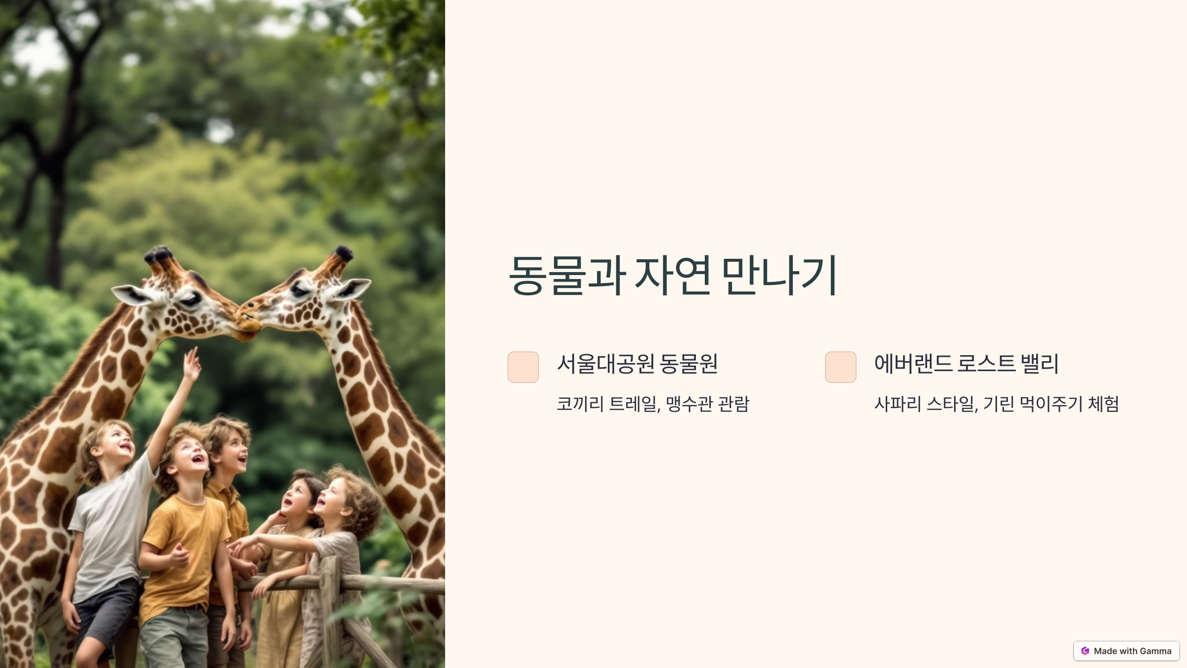 1. 🦒 동물과 자연을 가까이에서 만나다: 동물원 & 사파리