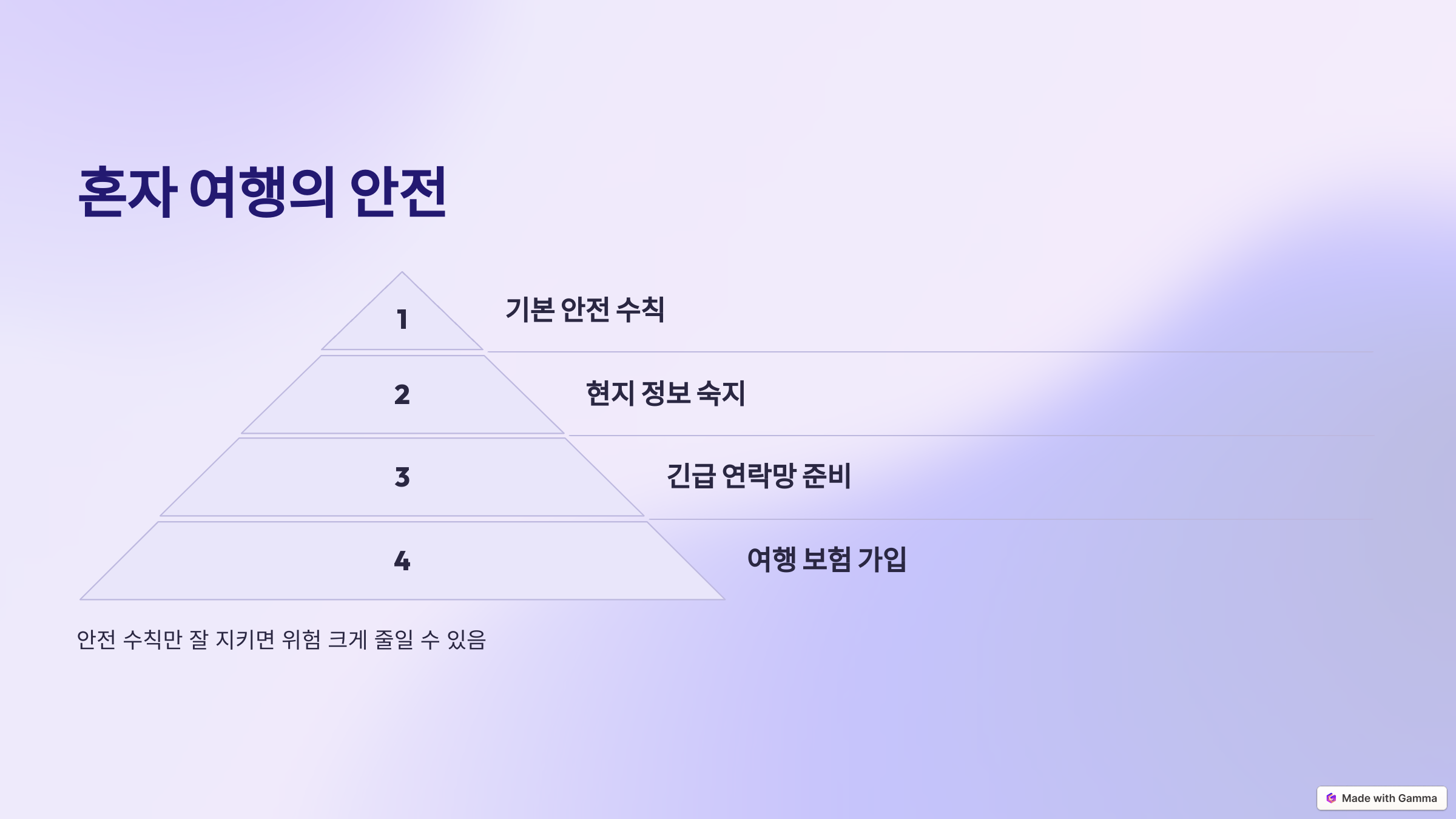 혼자 여행에서 안전은 가장 중요한 요소입니다.